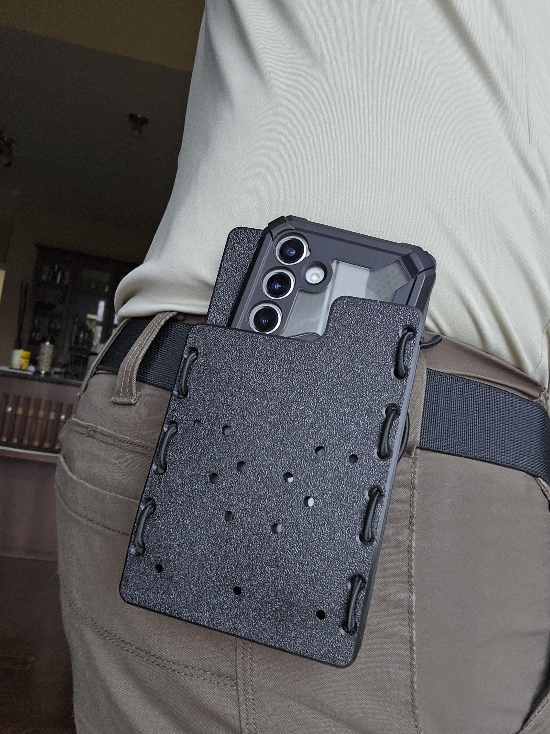 I ordered the MOLLE attachment for the phone case. It's so easy to attach and to take off when needed for readjustments. It can hold a variety of different sized phones, which is very convenient.